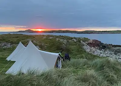 Stay in our ready set adventure tipi at Clifden eco Camping with private beach views, fresh sea air, and the pure Atlantic on your doorstep. Suitable for couples or up to three people.